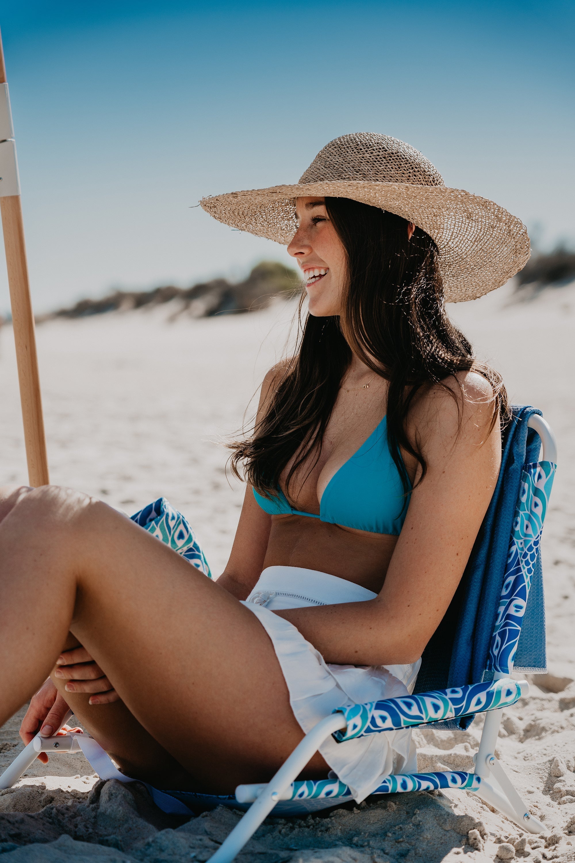 Good Vibes™ Foldable Beach Chair with Carry Strap, Lightweight & Portable, High Back, Powder Coated Frame - Peacock Paradise